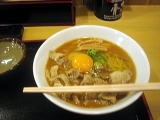 先週に引き続き、また来ちゃいました。 う〜ん。ヘビーローテーション (^_^;) 今回はソロツーリングではなく、マスツーリング。 今日の注文は肉玉うどん(大) ¥550 |