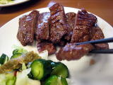 東北ツーリングのなか日に立ち寄った、展勝地にある食堂。 ここも、前日の耕心と同じような、太めの手打ち風。 ドライブイン的なたたずまいにもかかわらず、決してわるくはありません。 |