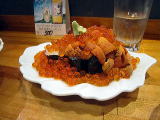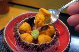 Go to トラベル ツーリング、2日目の昼に訪れました。 佐井村の特産は、ウニ。 特産のウニをご飯に載っけたシンプルなウニ丼をいただきました。 |