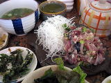 外房の安房天津近くにある地魚料理のお店。 K2Yの千葉県内ツーリングの昼食で立ち寄りました。 付け合わせのそばが、意外に美味しかった。 それに、サービスのアラ煮も。 |