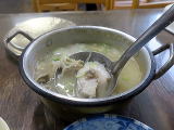 今日は石川県の金沢市に用事があり、途中にある富山県の朝日町に立ち寄って昼食を食べました。 訪れたのは国道8号線沿いにある栄食堂。 名物のたら汁をいただきます。 |