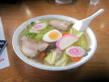 たら汁ツーリングの帰路、中央高速に上がる前に、遅い昼食を食べました。 食べたのは、伊那のB級グルメ、ローメン。 |
